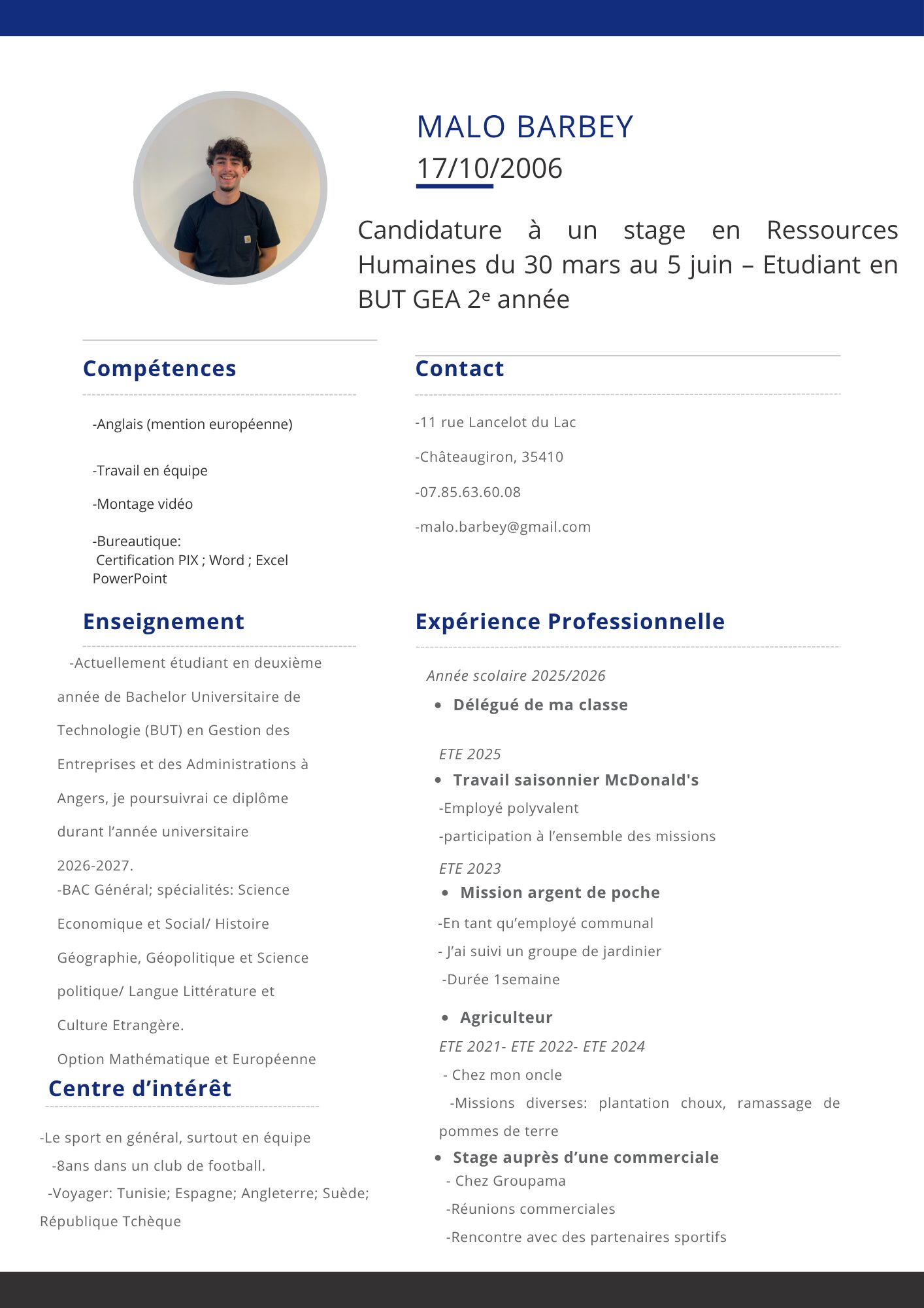 | Demande de stage | 2ème année de BUT GEA, spécialisé en RH | Malo BARBEY | 07/11/2025 | CV Malo BARBEY_07/11/2025 |
